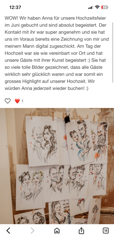 Im Nachhinein habe ich mich weiterentwickelt zur Live Zeichnerin und Karikaturistin für Events - Veranstaltungen - Hochzeiten - Firmenfeiern.