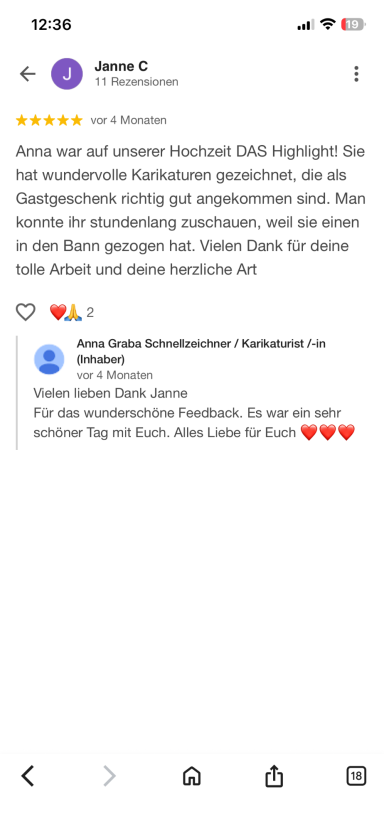 Mein Zeichenstil ist pointiert, charmant und wertschätzend – stets mit dem richtigen Maß an Humor. Ich arbeite diskret, effizient und flexibel,