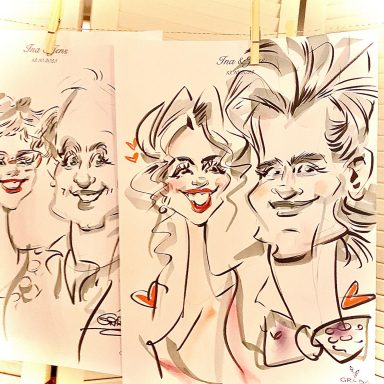 individuelle, liebevolle Karikaturen Eurer Gäste. Humorvoll, charmant und immer mit Respekt für die Persönlichkeit.