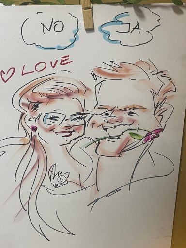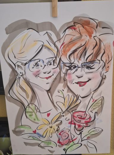 Im Nachhinein habe ich mich weiterentwickelt zur Live Zeichnerin und Karikaturistin für Events - Veranstaltungen - Hochzeiten - Firmenfeiern.
