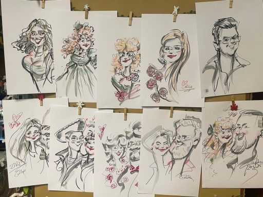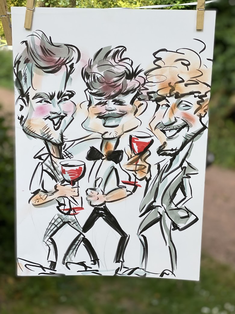 individuelle, liebevolle Karikaturen Eurer Gäste. Humorvoll, charmant und immer mit Respekt für die Persönlichkeit.