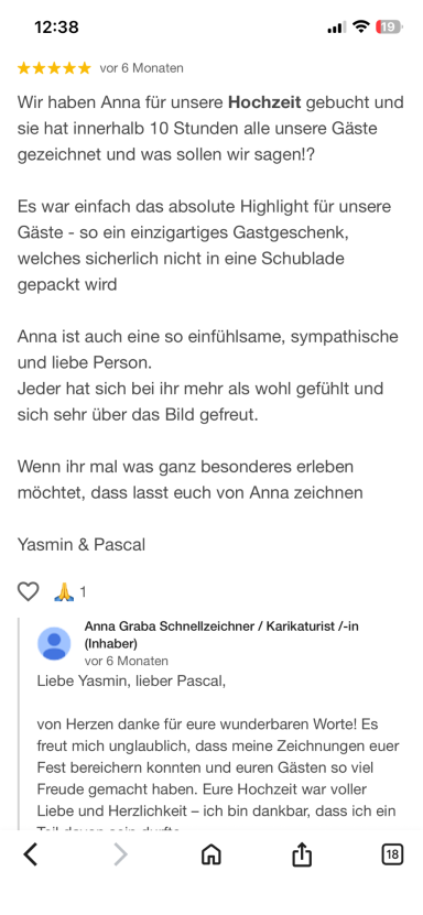 Mein Zeichenstil ist pointiert, charmant und wertschätzend – stets mit dem richtigen Maß an Humor. Ich arbeite diskret, effizient und flexibel,